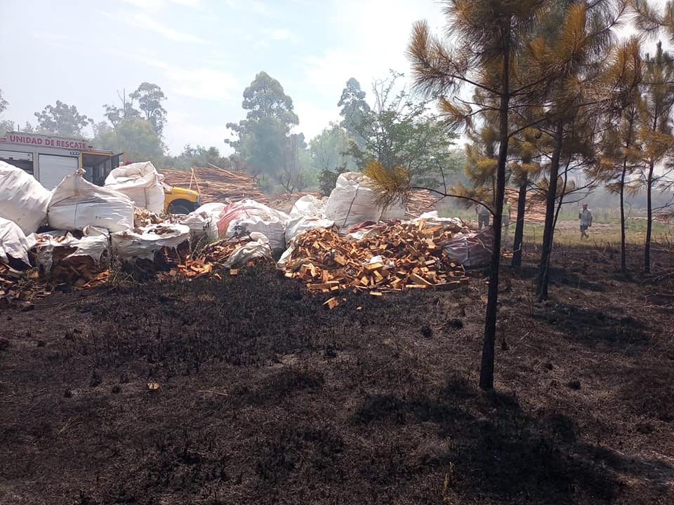 El incendio también afectó montículos de madera del aserradero Meyer, dónde los bomberos lograron frenar el avance del frente de incendio.