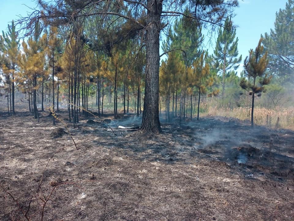 El siniestro se produjo alrededor de las 13:40 Hs., en el barrio Mendieta, en calle Capitán Rojas sin número, donde se quemaron unas 4 hectáreas de pastizales y cortina de pinos, con avance hacia dos aserraderos de la zona.