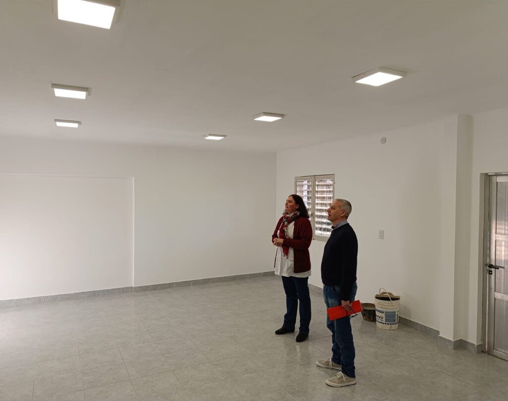 La recorrida también incluyó la Escuela NINA Nº 6 “General San Martín”, donde se ha finalizado la remodelación del comedor y el sistema de desagües. Esta intervención, con una inversión de más de $60 millones, ha resuelto problemas de hundimiento de pisos, inundaciones y deficiencias en las instalaciones eléctricas, proporcionando un espacio funcional y seguro para el comedor escolar. La obra fue entregada recientemente, y la rectora Mariel Tambucho manifestó su felicidad por el impacto positivo en los 130 estudiantes de la escuela.