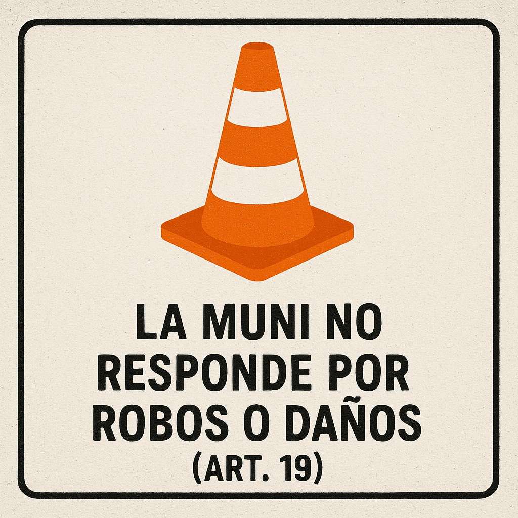 Un dato no menor es la cláusula de responsabilidad (Art. 19°): el municipio se deslinda de toda responsabilidad por robos, incendios o daños que sufran los vehículos, asumiendo el usuario “todo el riesgo”.