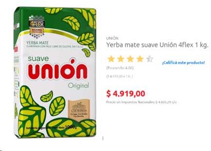 Y ahí aparece la medida que permite comparar esta nota con la anterior. Si se toma como referencia el precio del kilo de Yerba Unión Suave, fijado en $ 4.919,00 y publicado en el sitio web del mismo hipermercado utilizado en la comparación anterior, ese monto representa 5,52 kilos de yerba por habitante por mes.