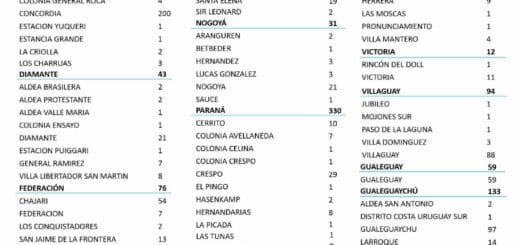 Por otra parte, se notificó el deceso de cuatro hombres. Uno de 59 años era oriundo de Concepción del Uruguay y permanecía internado en el hospital Justo José de Urquiza de la misma localidad. En tanto que otro de 62 años era de Victoria y estaba en un efector privado de la ciudad.