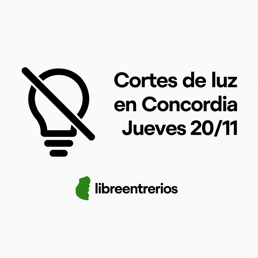 La Cooperativa Eléctrica de Concordia anunció nuevos cortes de energía en Concordia para este jueves 20 de noviembre, que afectarán a tres zonas de la ciudad en distintos horarios. Estas interrupciones se suman a otras realizadas durante el mes por motivos de mantenimiento en la red de media tensión, generando diversas reacciones entre los vecinos.
