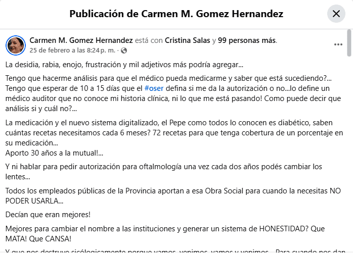 La crisis en OSER sigue escalando y golpea de lleno a los trabajadores provinciales aquí en Concordia. A la reciente decisión de la Federación Médica de Entre Ríos (FEMER) de rechazar la propuesta arancelaria del Gobierno provincial para marzo de 2026, se suman los testimonios desesperados de los propios afiliados. A través de las redes sociales, denuncian que la nueva obra social —lejos de traer soluciones con su cambio de nombre y sistema digital— los somete a burocracia interminable, autorizaciones demoradas de hasta 15 días y un desgaste psicológico que describen bajo la peligrosa ‘metáfora de la rana’: un acostumbramiento silencioso a la falta de respuestas. La opinión de Carmen M. Gomez Hernandez.