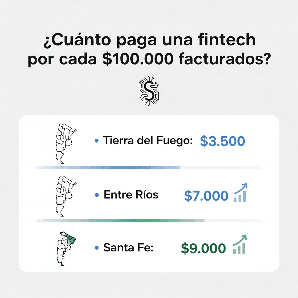 2. Desigualdad interjurisdiccional: La disparidad entre el 3,5% de Tierra del Fuego y el 9% de La Pampa/Santa Fe genera competencia desleal territorial. Una fintech radicada en Ushuaia paga menos de la mitad que una en Rosario o La Plata por la misma actividad, distorsionando decisiones de localización empresarial.