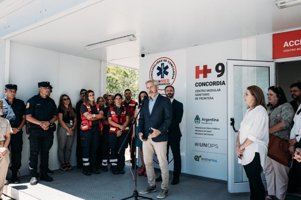 Durante su visita, el mandatario entrerriano también inauguró el Centro de Primera Respuesta “Hospital Modular Fronterizo”, donde además funciona la base logística operativa de la Brigada Forestal, que custodia la Reserva Natural Perilago de Salto Grande.