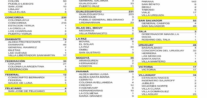- AGMER Argentina aumento autovía Artigas Brasil CAFESG Chajarí citricultura Colón Concejo Deliberante Concepción del Uruguay Concordia Cooperativa Eléctrica coronavirus COVID-19 Cámara de Diputados decesos docentes Entre Ríos Federación Federal Gobernador Gustavo Bordet gobernador Rogelio Frigerio gobierno provincial Gualeguaychú hospital Delicia Concepción Masvernat Hospital Masvernat INDEC intendente Francisco Azcué licitación municipalidad municipalidad de Concordia nuevos casos obras Paraná Puerto Yeruá Río Uruguay Salto Salto Grande San Salvador Turismo Uruguay vacunación Villaguay Ángel Giano